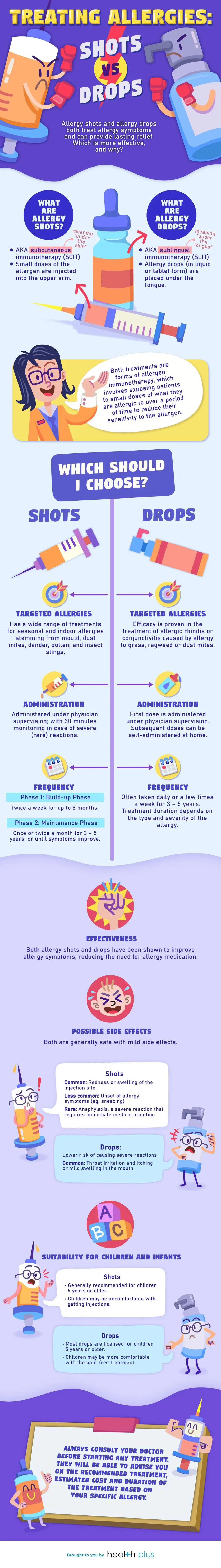 In conclusion, both allergy shots and allergy drops are safe and effective treatment options that reduce your body’s reaction to allergens. While allergy shots target a wider range of allergens as compared to allergy drops, the latter may be a more cost-effective and convenient option as it can be self-administered at home, without you needing to pay your doctor a visit. Allergy drops may also be more suitable for young children or adults who are afraid of needles.