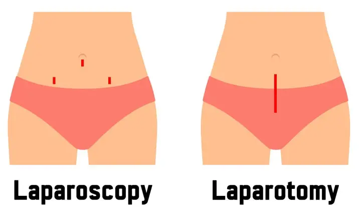 This surgery involves the surgeon removing the cyst through 3 – 4 tiny incisions, one near your belly button and two either on the side or near the centre, using an instrument with a camera so they can see inside your body while performing the operation. The surgeon will stitch or glue the incision so you are left with only a very small scar. It may be a day surgery carried out under general anaesthesia so you will be able to go home soon after you wake up. You should be able to get back to normal activities within 1 – 2 weeks.