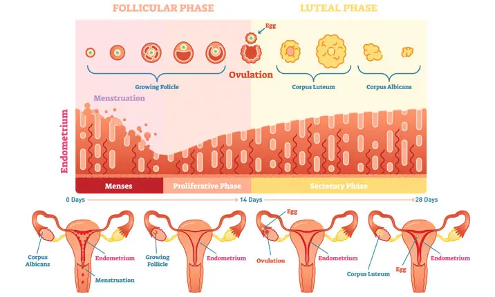 A menstrual cycle starts on the day when a period starts and ends the day before the next period. The length of a menstrual cycle length is usually between 21 and 35 days. However, the length of one’s menstrual cycle can vary between women, and even from one menstrual cycle to the next.