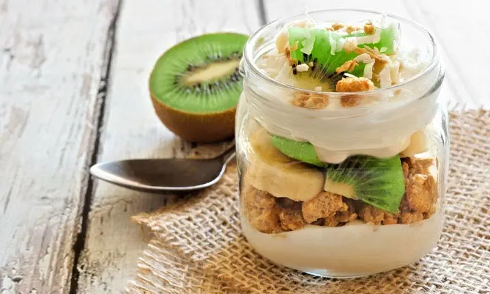 Who says kids' snacks can't be sophisticated? This simple dish looks lovely in a clear vessel. Simply layer your chosen ingredients so you get a lovely mix of yoghurt, fruit and cereal with every spoonful. While you can choose your favourite fruits, this recipe uses kiwi for its high fibre and vitamin C content and bananas which provides nutritious plant compounds such as dopamine and catechin as well as potassium and vitamin B6.