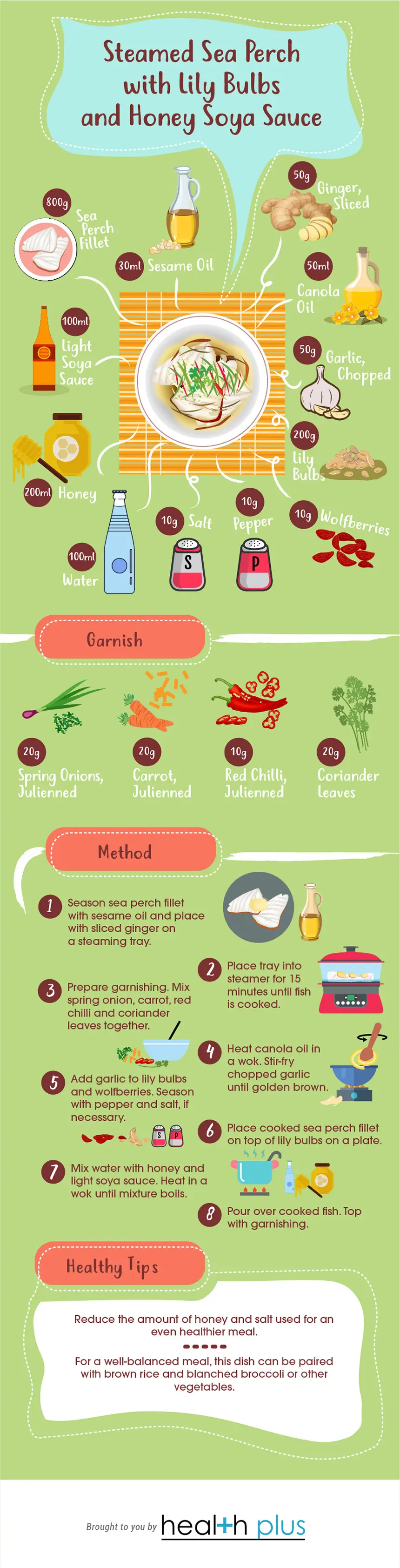 Wracking your brains for a simple yet healthy dish to prepare for your guests? Try cooking this dish! Made with mostly natural and fresh ingredients, it minimises the use of sugar and other unnecessary flavourings to bring out the authentic taste of the fish.