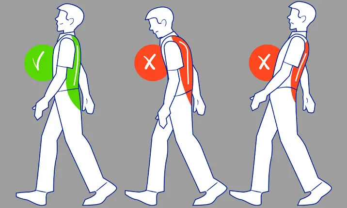 When you look down at your feet while walking, or if your shoulders are hunched forward, it can place a lot of strain on your neck and back.
