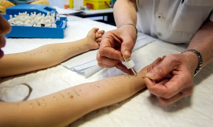 Hingga sepertiga bayi dan balita memiliki beberapa bentuk alergi makanan yang dapat memicu kekambuhan eksim, tetapi hal ini cenderung berkurang seiring dengan bertambahnya usia anak. Jika Anda mencurigai adanya alergi makanan, penting untuk berkonsultasi dengan spesialis alergi yang dapat melakukan tes tusuk kulit atau tes darah jika ada kecurigaan klinis terhadap alergi makanan. Hindari menghilangkan beberapa makanan dari diet anak Anda karena sebagian besar tidak menyebabkan alergi yang sebenarnya. Dengan menghilangkan beberapa makanan dari menu makanan anak Anda, Anda berisiko memengaruhi nutrisi mereka dan mereka mungkin tidak mendapatkan makanan yang seimbang.