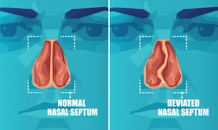 Septum yang menyimpang adalah kondisi di mana "dinding" internal hidung Anda yang memisahkan saluran hidung kiri dan kanan condong ke satu sisi, sehingga menutup sebagian saluran hidung. Meskipun sebagian orang terlahir dengan kondisi ini, kondisi ini juga dapat terjadi setelah cedera.