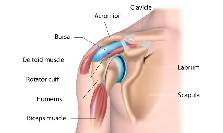 Bahu Anda adalah titik di mana tulang lengan atas Anda, yang dikenal sebagai humerus, bertemu dengan tulang belikat Anda, juga dikenal sebagai skapula. Rotator cuff terdiri dari otot dan tendon yang menopang persendian, dan ada cairan di kantong kecil yang disebut bursa yang mengelilingi sendi dan melindungi rotator cuff.