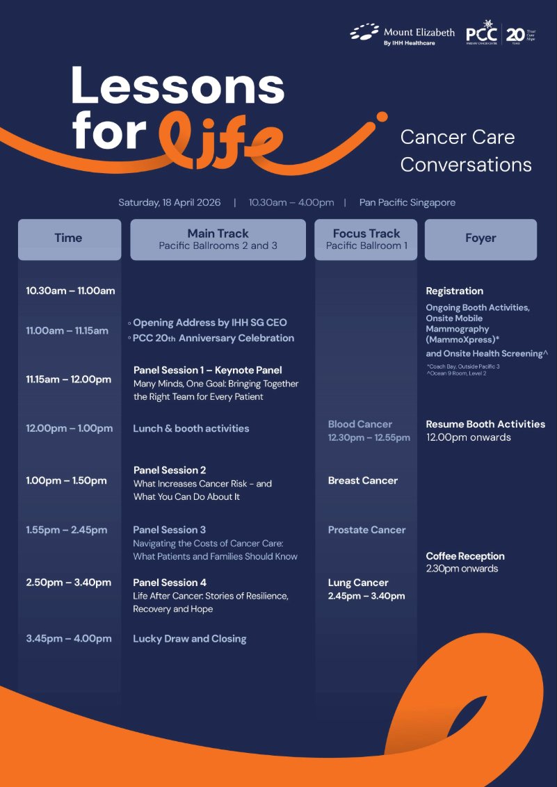 This panel will feature Ms Yvonne Ang, cancer survivor & senior financial advisor, and other speakers from insurance agencies and independent financial advising groups.