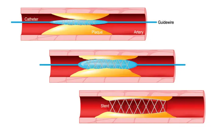 Nếu các động mạch của bạn bị tắc nghẽn, bác sĩ có thể khuyến nghị tiến hành nong mạch vành, giúp cho các mạch máu bị hẹp hoặc tắc nghẽn được mở lại. Bác sĩ tim mạch sẽ luồn một ống nhỏ có đầu gắn một quả bóng nhỏ chưa được bơm căng vào bên trong động mạch bị tổn thương thông qua một vết mổ nhỏ ở cổ tay hoặc bẹn của bạn. Bác sĩ phẫu thuật sau đó bơm căng quả bóng này để làm giãn mở động mạch. Một stent thường được đặt vào cùng lúc đó để giữ cho động mạch được mở.