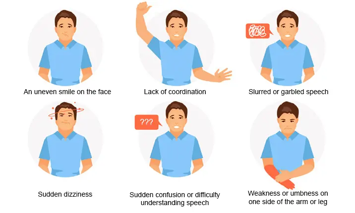 Các dấu hiệu của một cơn đột qụy bao gồm:
