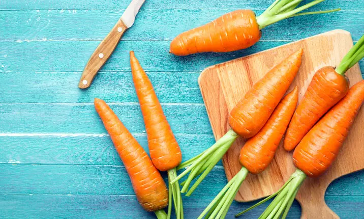胡萝卜含有丰富的维生素 A,可抵御晒伤、细胞死亡和皱纹。维生素 A 还能为肌肤带来健康柔和的光泽。