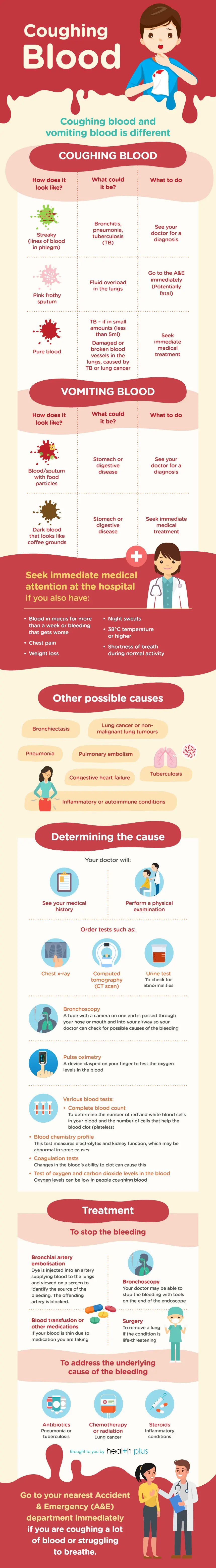 Coughing Up Blood (Hemoptysis). N.D. Retrieved 31 August 2018 from https://www.webmd.com/lung/coughing-up-blood#1