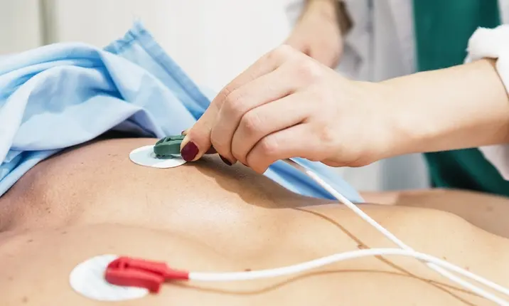 12 导联 ECG是一种快速无痛的检查。用于评估心脏电活动的传导。如果出现心肌肥厚、心脏病发作和心律不齐,会在 ECG 上显示出变化。医生将在胸部、手臂和腿部放置 10 个电极,产生 12 个不同的图形(或“导联信号”),用以代表心电活动。心电图通常在静息状态下进行(所以您将平躺),但是医生也可能需要检查心脏的负荷情况(通过在跑步机上运动或者使用药物诱发)。
