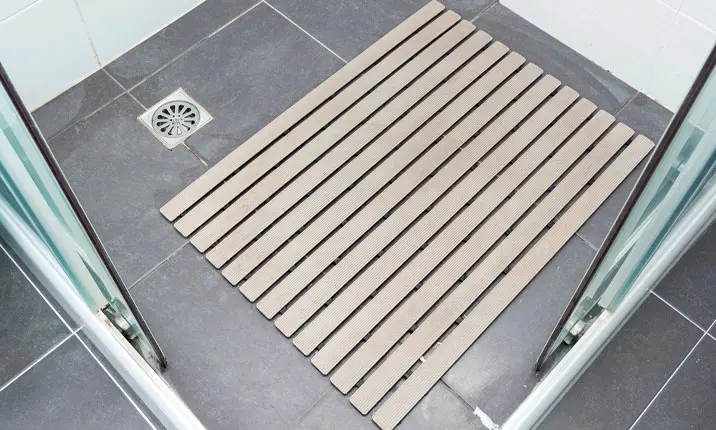 选择防滑的浴室瓷砖。在所有可能受潮的表面铺上防滑垫、防滑条或地毯。